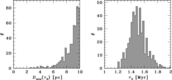 Left: Distribution of minimum separations,