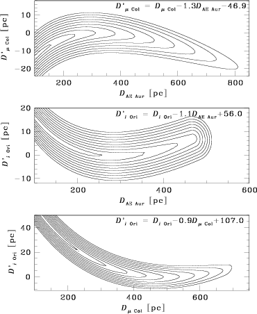 each pair of stars, Fig. 7 shows contours of minimum