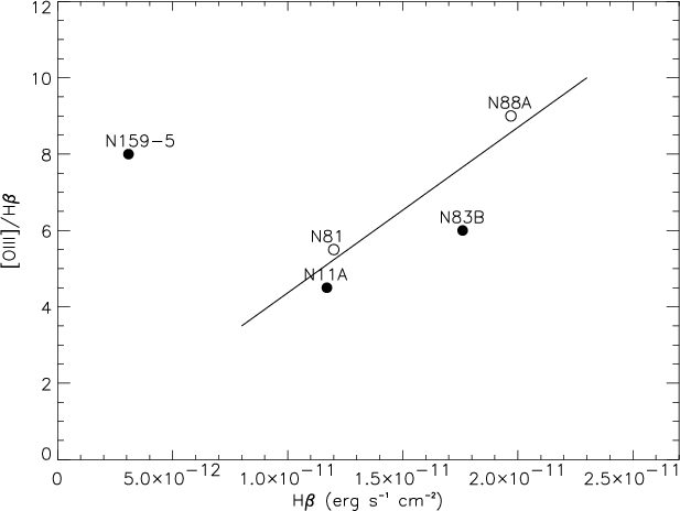 we exclude N159-5, the plot of Fig. 6 suggests that there is indeed a
