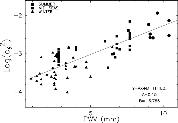 of both PWV and ambient temperature, and thus it seems to suggest that
