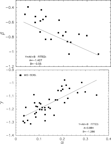 and we found that the three different power law slopes correlate and are