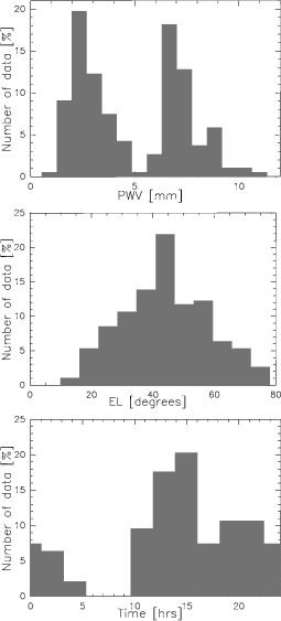 weather (PWV<4 mm) the FWHM of the distributions can be of several