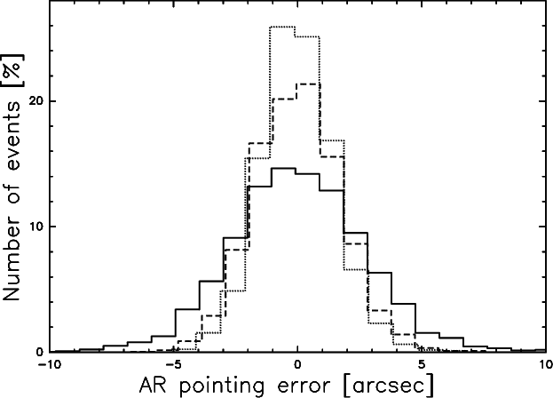20''(summer). The probability density distributions of the AR pointing errors