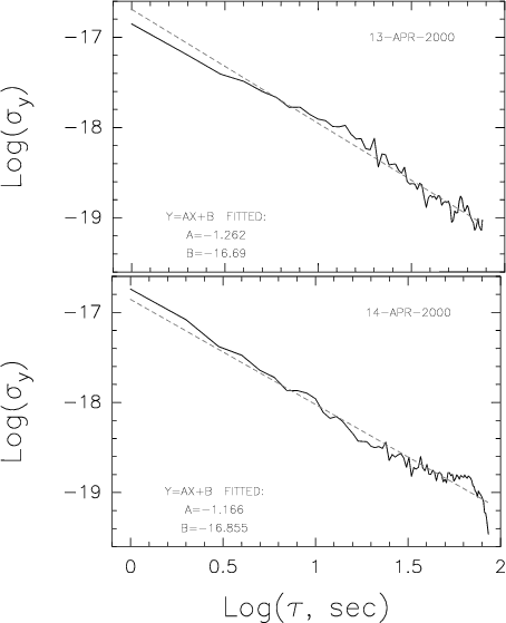 Power spectra and Allan variance plots can also be fit with single power laws,