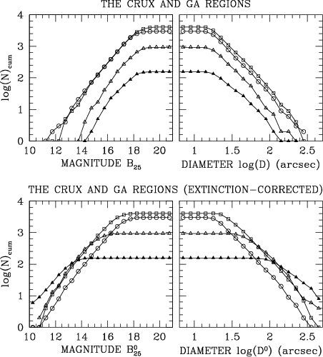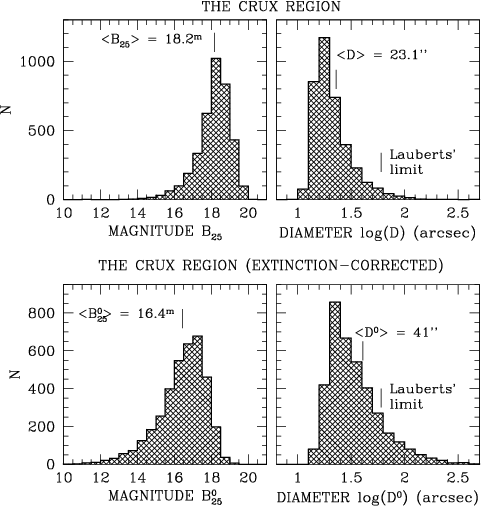 (right) of the 3759 galaxies in the Crux region. On average the galaxies are quite small