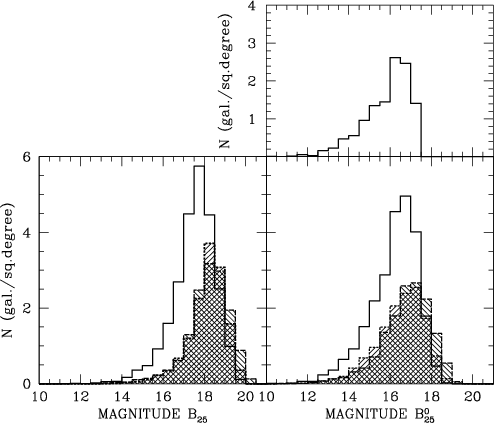 for the magnitude and diameter range displayed in the lower panels of Fig. 8, not including those galaxies