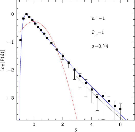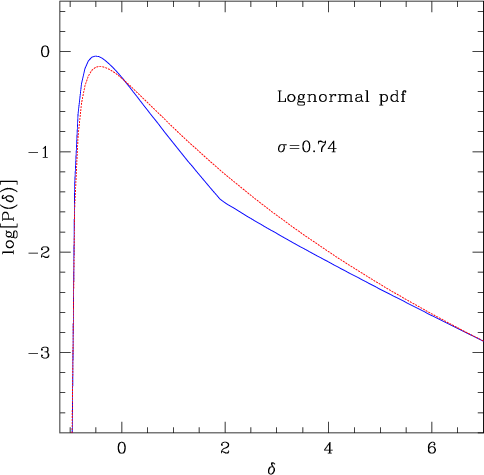 is the rms density fluctuation. This allows one to get the precise shape of the probability distribution function (pdf)
