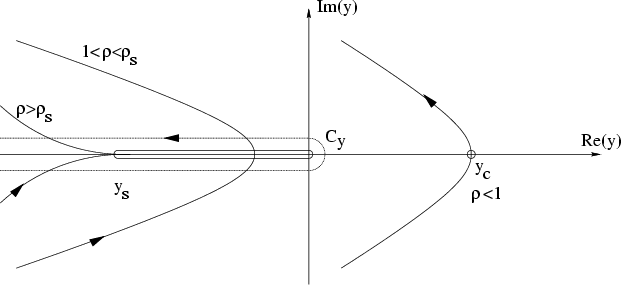 actually show a branch cut along the real negative axis for y<0. Then, it is clear that for large