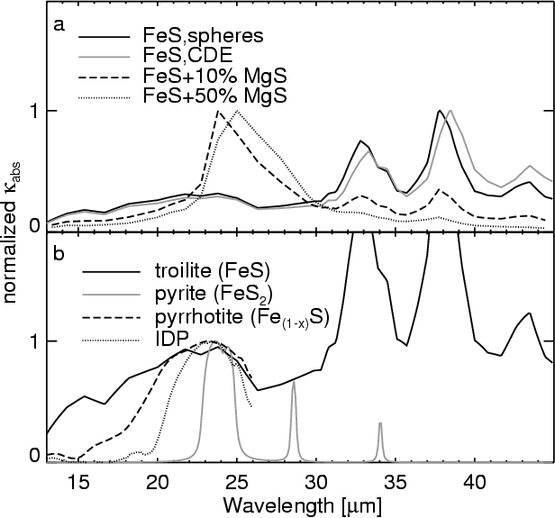 the optical properties of iron sulfide grains. We show in panel a