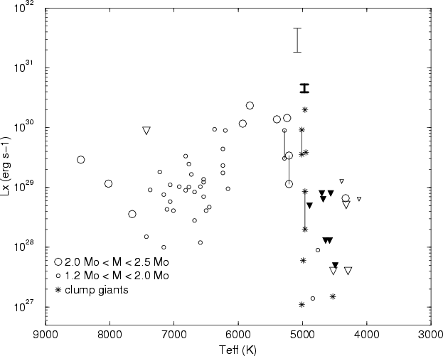 different mass ranges. The X-ray emission of giants reaches a