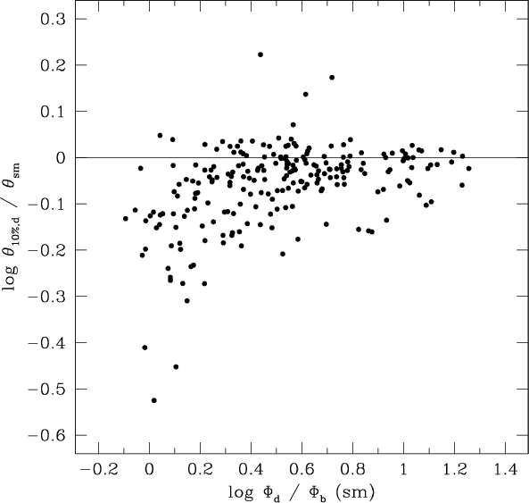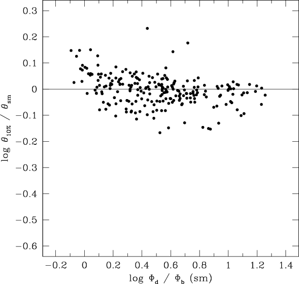 different by more than 30% from the deconvolved 10% diameter. Objects