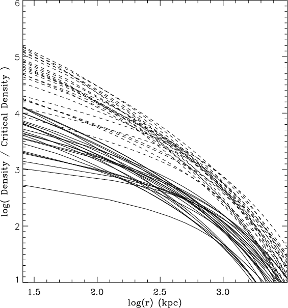 flatness of these profiles in the innermost regions (Frenk et al. 1999; Loken et al. 2002). This disagreement may be due to
