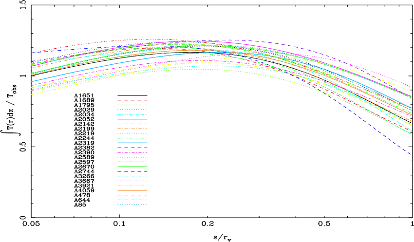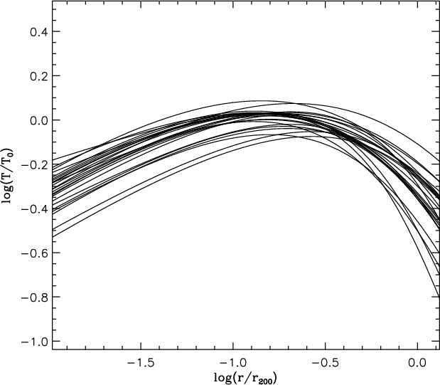 that for a set of 21 clusters the temperature profile has a clear
