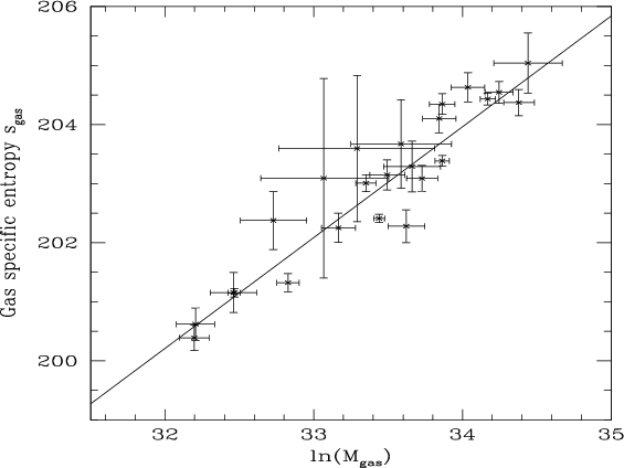 between this integrated specific entropy and both the gas mass