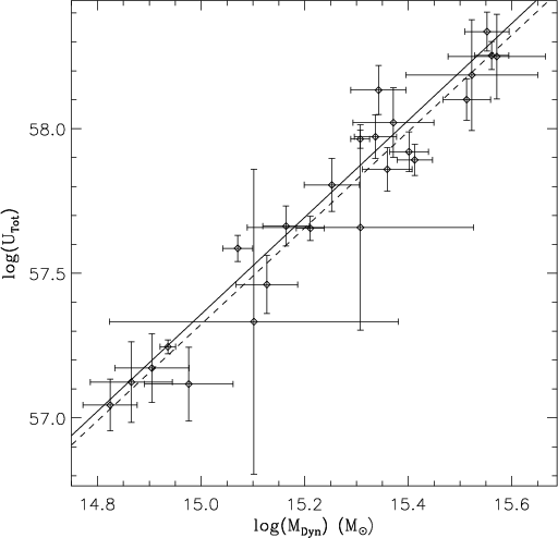 potential energy to its total mass, with the same slope as that