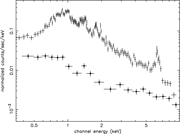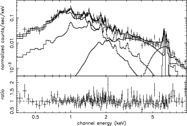 We also note that with the present statistics the fit is unable to independently determine the temperature of the hot plasma component, and the power-law photon index, and the column density.