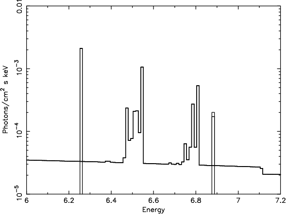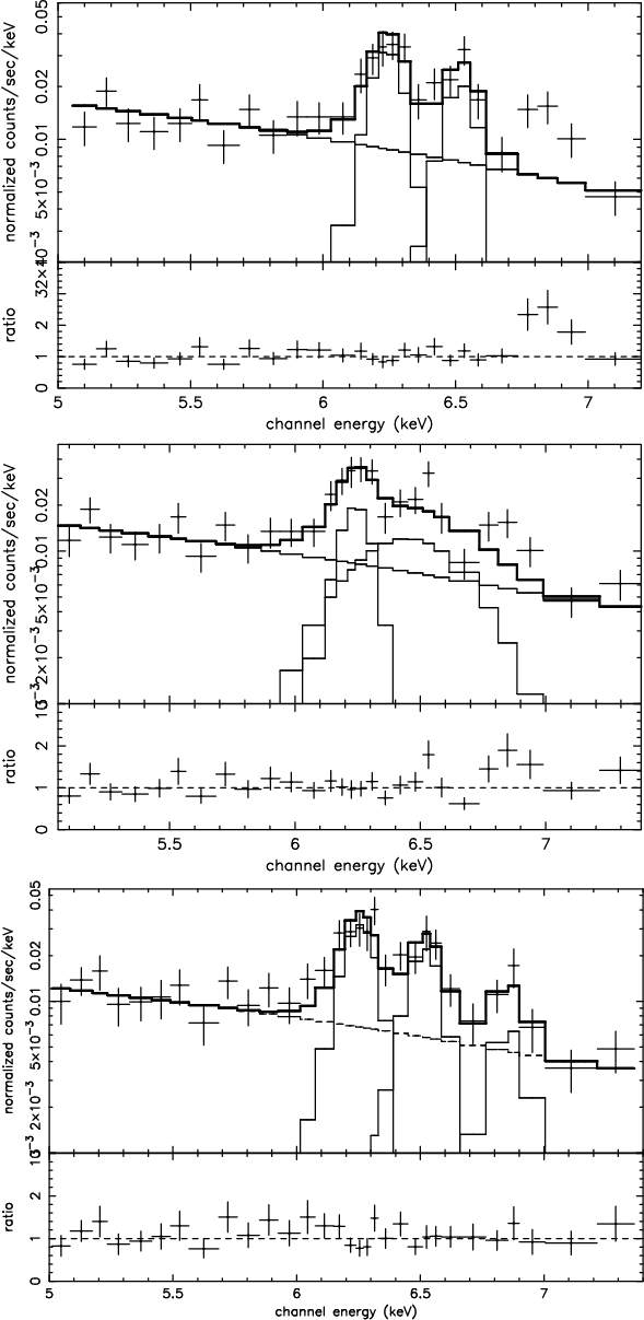 and (iii) a higher ionized line at 7.0 keV (a blend of the Fe XXVI and the Fe K