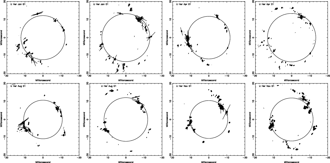 Vlemmings et al. (2002) present circular polarization measurements of H2O masers in a number of stars including U Herculis. The circular polarization is interpreted as Zeeman splitting giving a direct measure of one component of the magnetic field. Their conclusion was that magnetic pressure dominated the thermal in the regions of the H2O masers. Analysis of the circular polarization in the data presented here will be given in a future publication.
