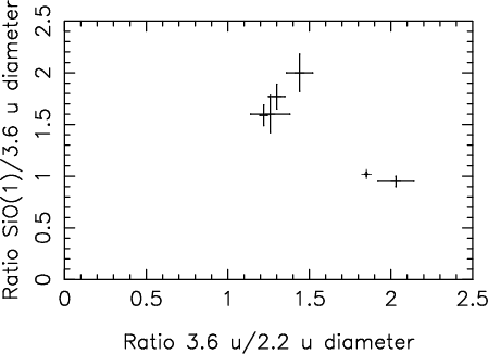 (Danchi et al. 1994) suggest that the stars with the smallest SiO/3.6