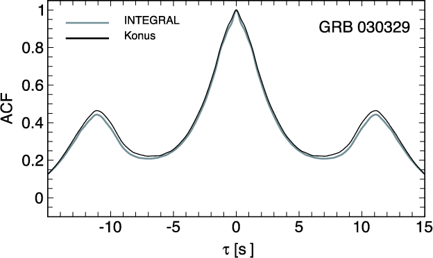 experiments. As reported by Fenimore et al. (1995), the ACF of GRBs narrows at