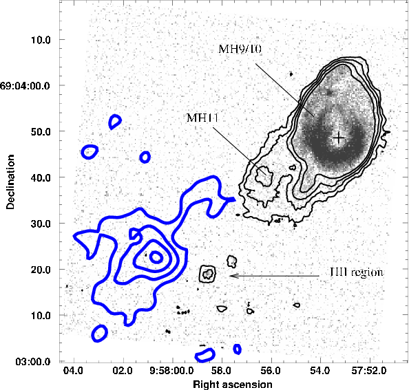 First identified by Fabbiano (1988), X-9 is an ultraluminous X-ray source (ULX) situated 40'' N-W of the complex. At the distance of M 81 its X-ray luminosity is 1040 erg s-1, i.e. about half that of the nucleus of M 81. Miller (1995) identified the extended emission already observed by Henkel et al. (1993) to be a bright H