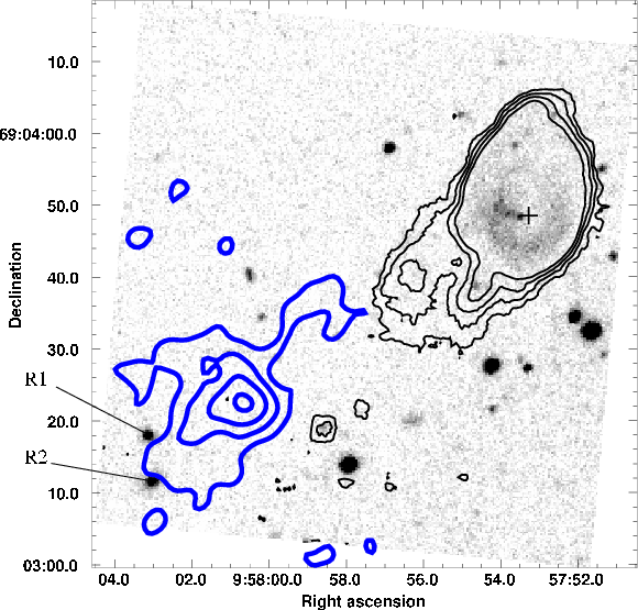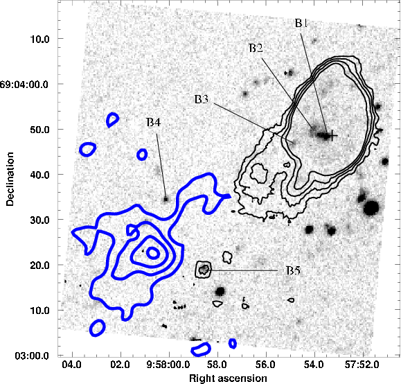 complex (B4). The two red objects mentioned in Henkel et al. (1993) and interpreted as possible background galaxies are also seen in the R band image (Fig. 7 objects R1