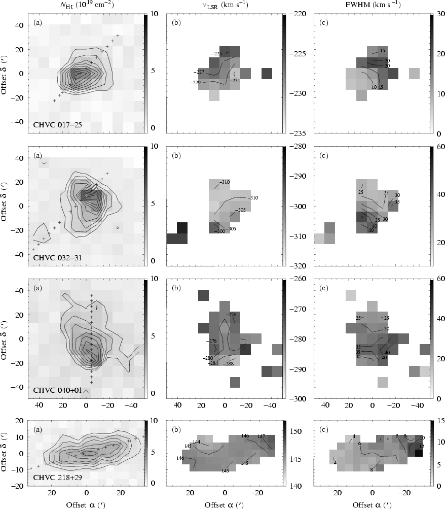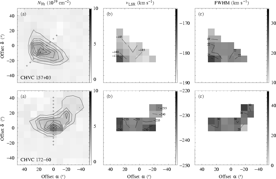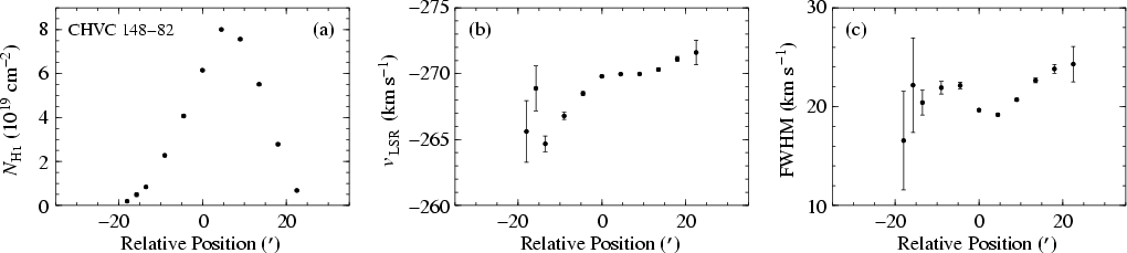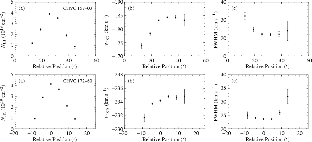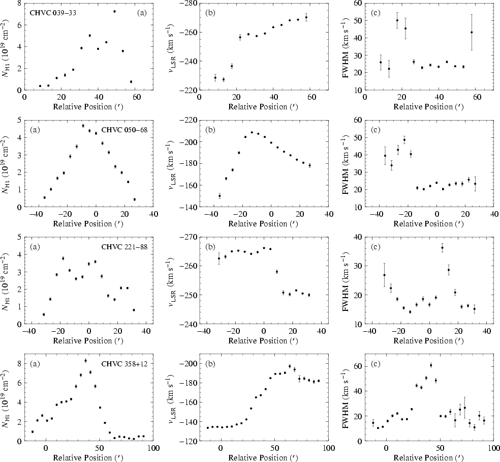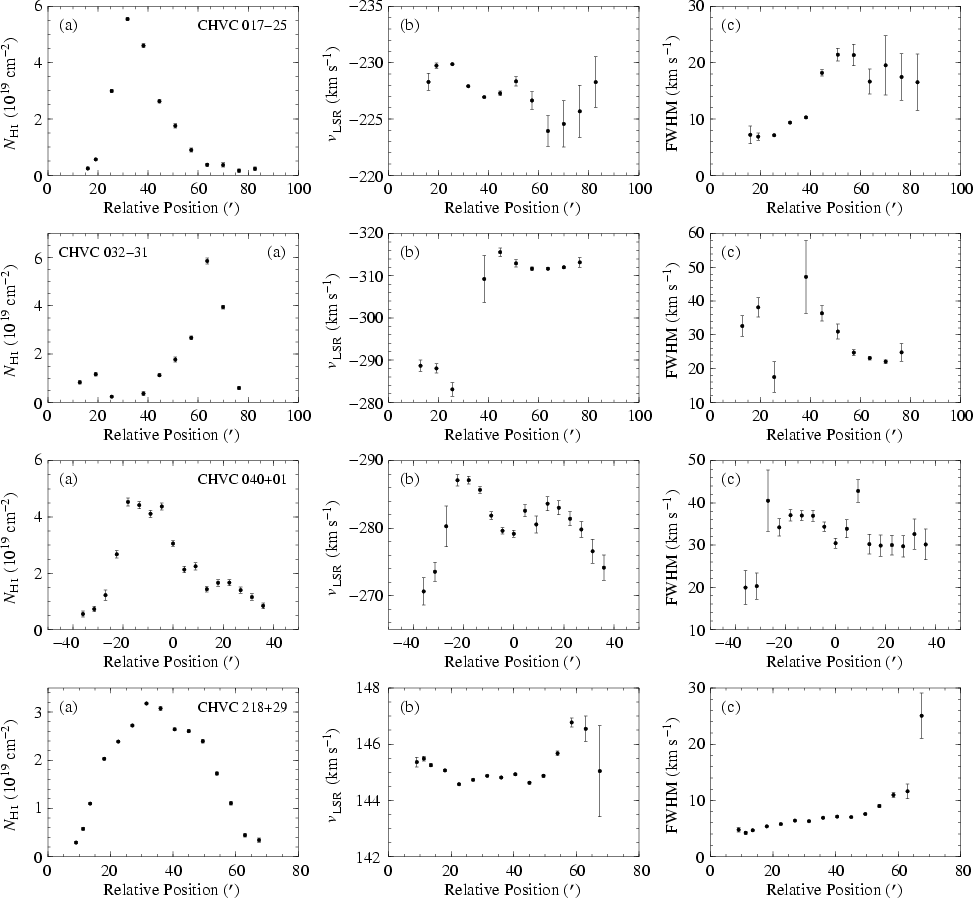 the ambient medium. In addition, we have obtained spectra along an appropriate axis across each CHVC with longer integration