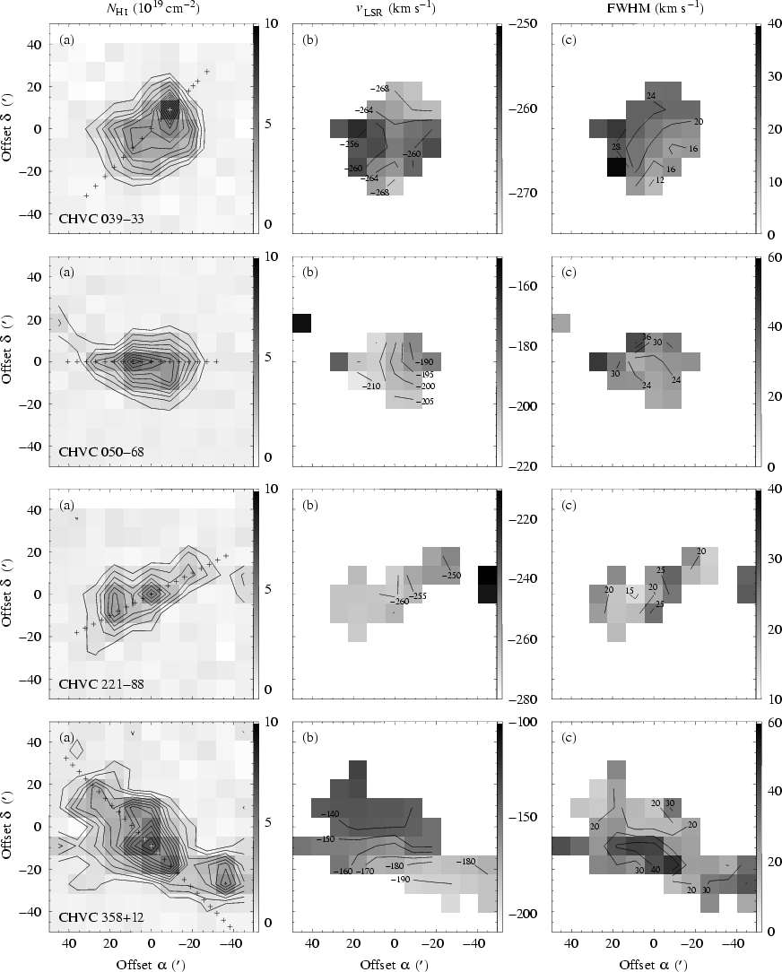 An improved CHVC catalogue with 67 objects on the basis of the LDS was published by de Heij et al. (2002b), using an automated search routine. In addition, Putman et al. (2002) extracted 179 CHVCs from the H I Parkes All-Sky Survey (HIPASS, Barnes et al. 2001). Both catalogues for the northern and southern sky were then combined by de Heij et al. (2002c) for an all-sky catalogue of 216 CHVCs (30 clouds were located in the overlap region between LDS and HIPASS).