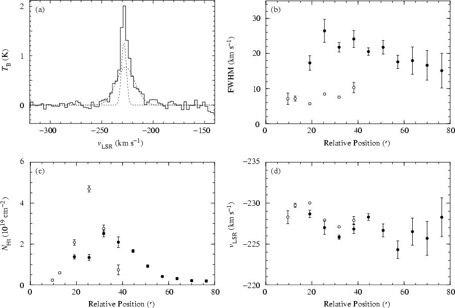 compact substructure which is unresolved with the 25-m Dwingeloo telescope (36' HPBW). The obtained column density ratios are