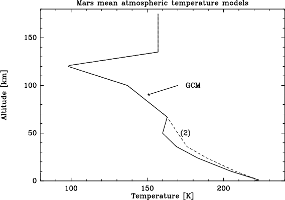 GCM temperature profile (1) or with a warmer lower atmosphere (model 5