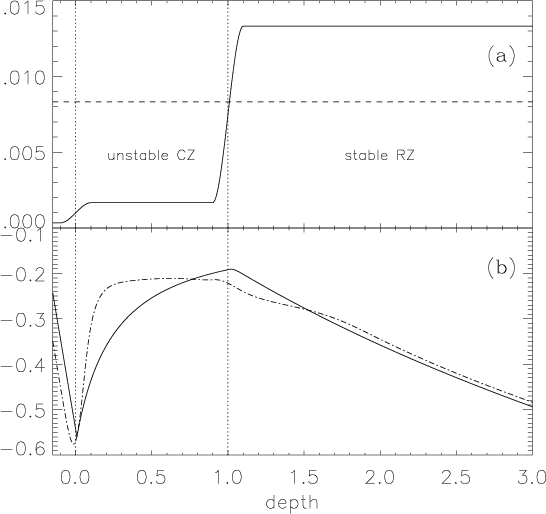 stably stratified radiative zone (hereafter RZ). In all