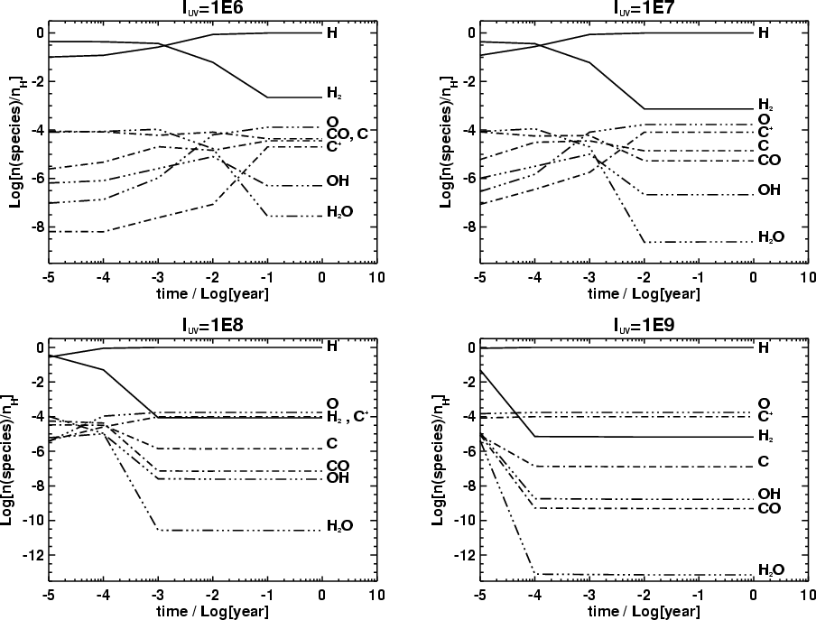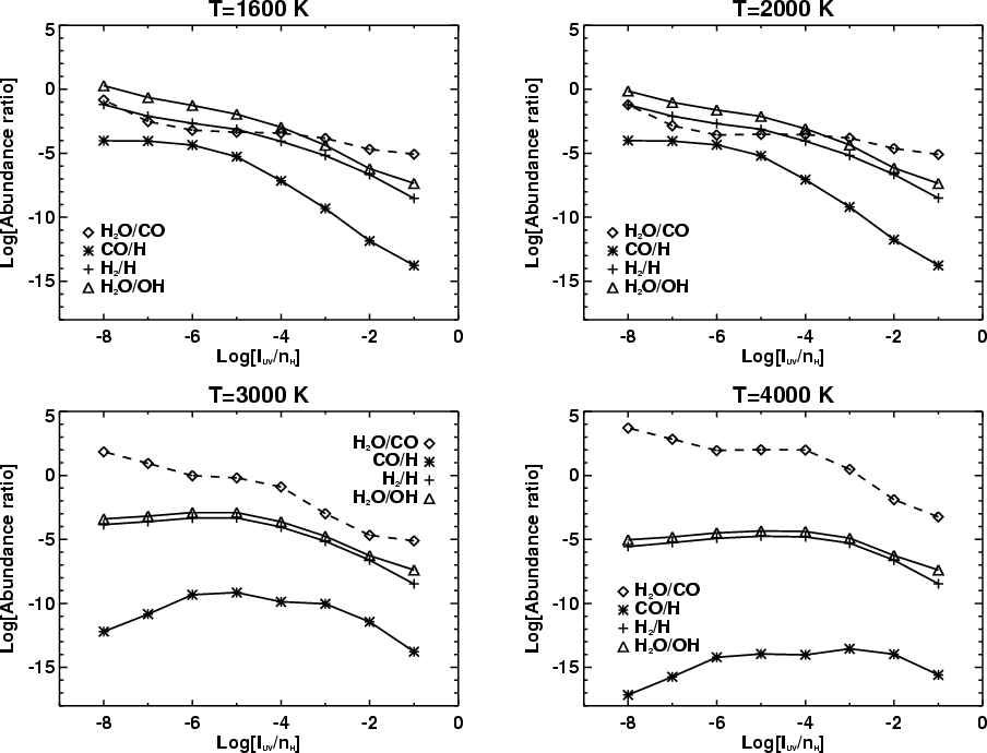 abundances depend in general on the gas temperature and UV flux
