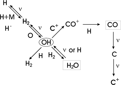 low abundance. The radical OH is central to the chemical network