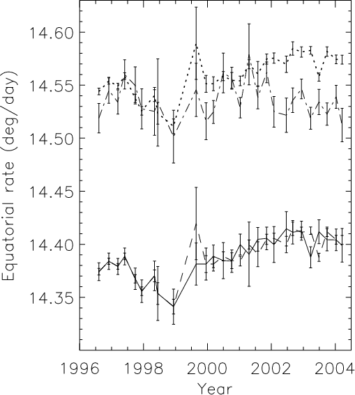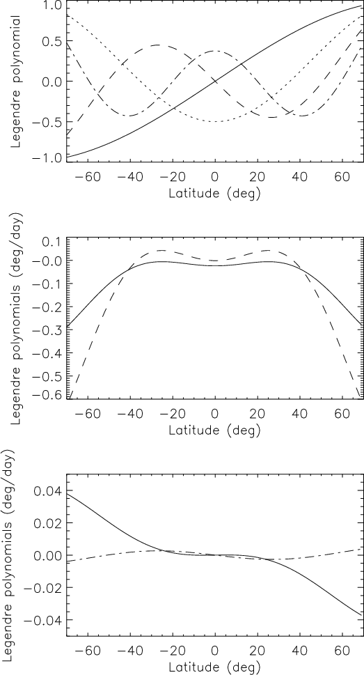 on rotation rates versus latitude (in deg/day) and