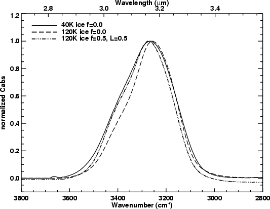 to water ice is found to vary from less than 3% w.r.t. water ice in