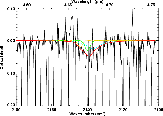 is the sum of the three components after convolution by the profile of the ISAAC spectrometer (