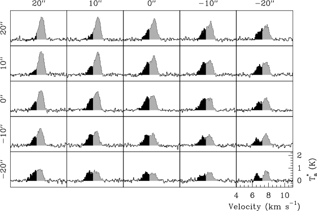 in the molecular cloud (see also Fig. 7 of Quillen et al. 2005, for C18O data with a