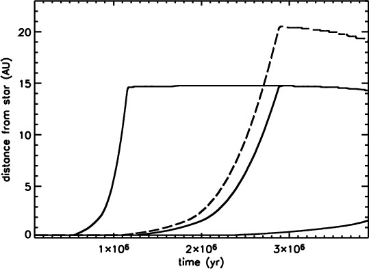 Conclusions. This outward and then inward moving edge marks a region of high dust concentration. This density enhancement, and the efficient transport of particles from close to the star to large distances away, can explain features of comets such as high measured ratios of crystalline to amorphous silicates, and has a large number of other applications.