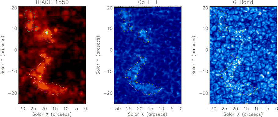 MDI was then cross-correlated with Ca II H and TRACE 1550 Å. All images